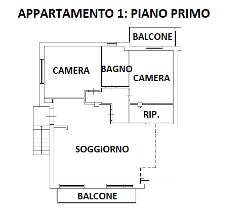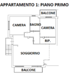 🏡 Al piano primo trovi un appartamento accogliente con pavimento in parquet, una zona giorno con angolo cottura e balcone, il disimpegno, un bagno e due camere da letto. Una delle due ha il suo balconcino e persino una cabina armadio, un dettaglio sempre utile.