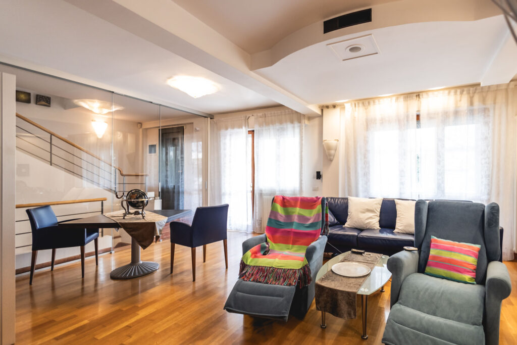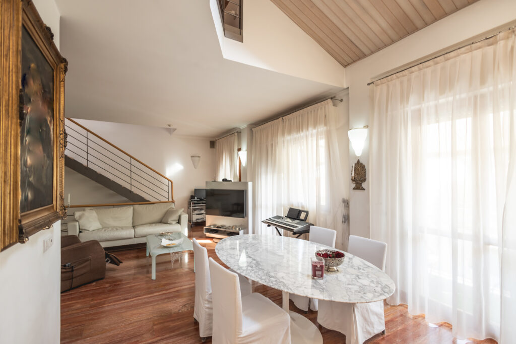 🏡 Salendo al piano secondo, grazie alla scala in marmo, si accede al secondo appartamento: la zona giorno è luminosa e servita dal suo balcone, c’è una cucina abitabile, il bagno, una camera matrimoniale con balconcino e una stanza spogliatoio che può diventare tranquillamente una cameretta o uno studio. Da qui parte una scala interna che porta al piano mansardato, un ambiente grande e sfruttabile come ulteriore camera, stanza hobby o ufficio.
