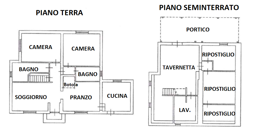Piano seminterrato: ampia tavernetta con uscita diretta al portico, lavanderia e tre locali multiuso, pronti a trasformarsi in studio creativo, palestra privata o stanza hobby.
